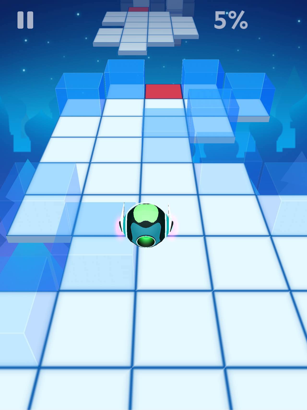 1、起始阶段,控制小球避开地面上的障碍,如树木和石头。